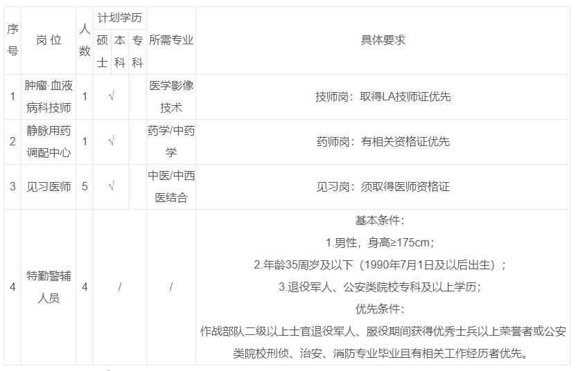 (三)报名截止后,医院将结合岗位条件对报名人员进行资格审查。
