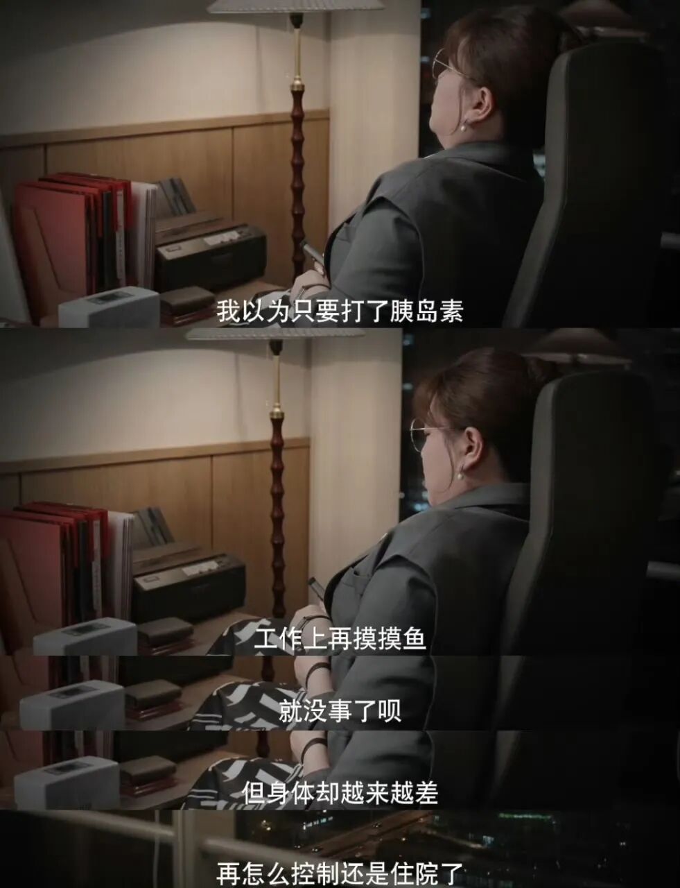 一直到后半段,才承认自己有糖尿病,就是因为长期昼夜颠倒,作息不规律。