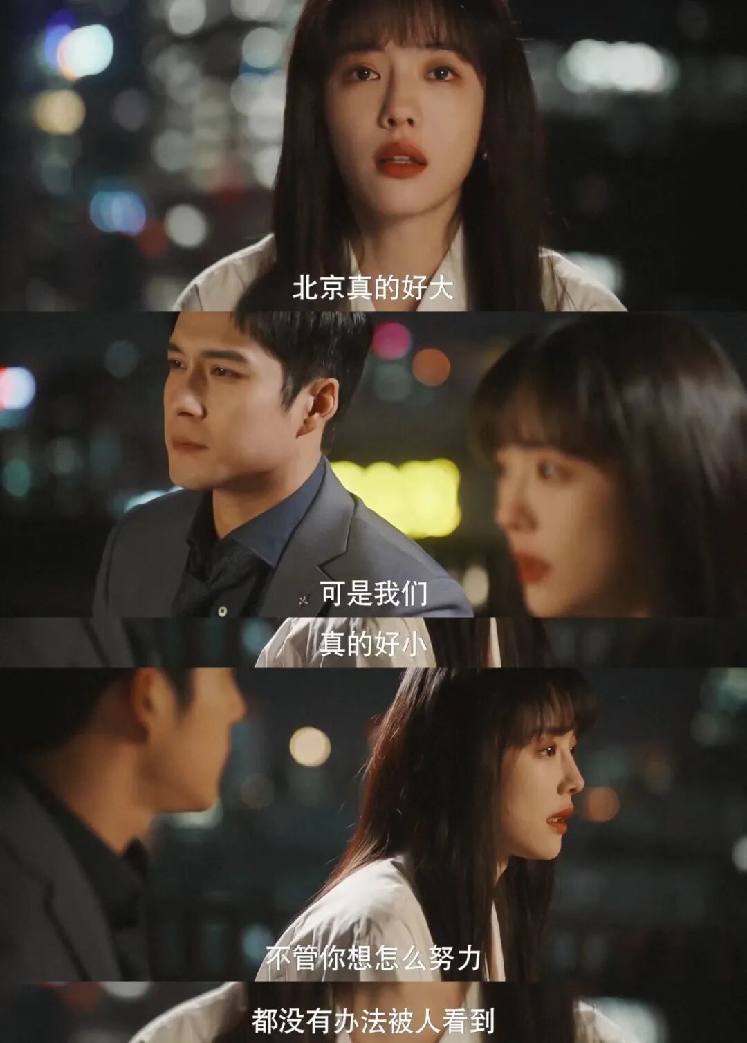看着离开的上司、灯火通明的大厦、还有光影背后忙碌不朽的重复的人,女主角唐影说出了最让人心碎的独白: